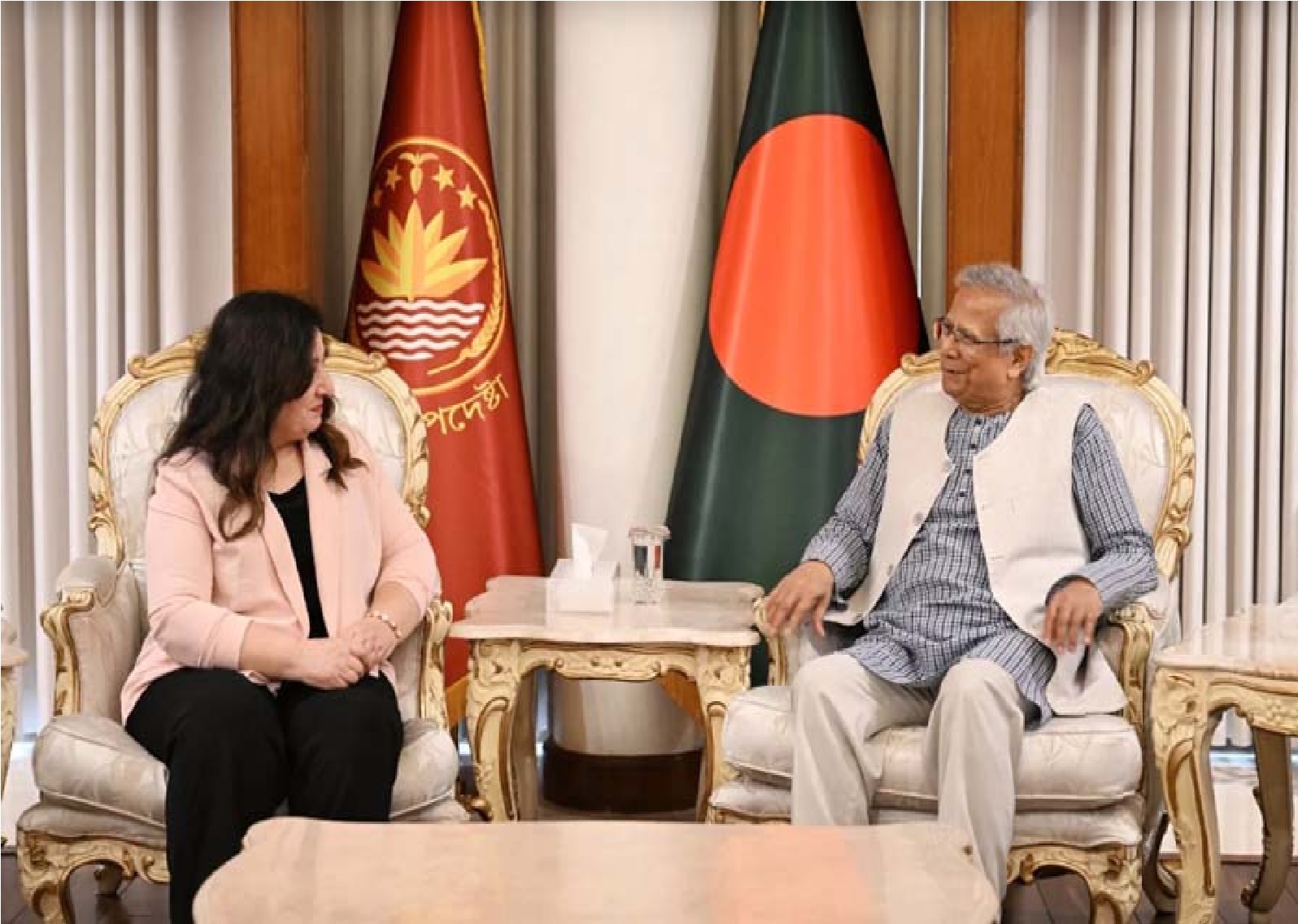 অধ্যাপক ইউনূস বলেন, “আপনারা এমন এক সময়ে বাংলাদেশে এসেছেন, যখন দেশটি এক ঐতিহাসিক রূপান্তরের মধ্য দিয়ে যাচ্ছে। তরুণ নেতৃত্বের আন্দোলনের ফলেই এই পরিবর্তন এসেছে।” তিনি রোহিঙ্গা প্রত্যাবাসনকেই সংকটের একমাত্র টেকসই সমাধান হিসেবে উল্লেখ করেন এবং আন্তর্জাতিক সহায়তা হ্রাসে উদ্বেগ জানান।
