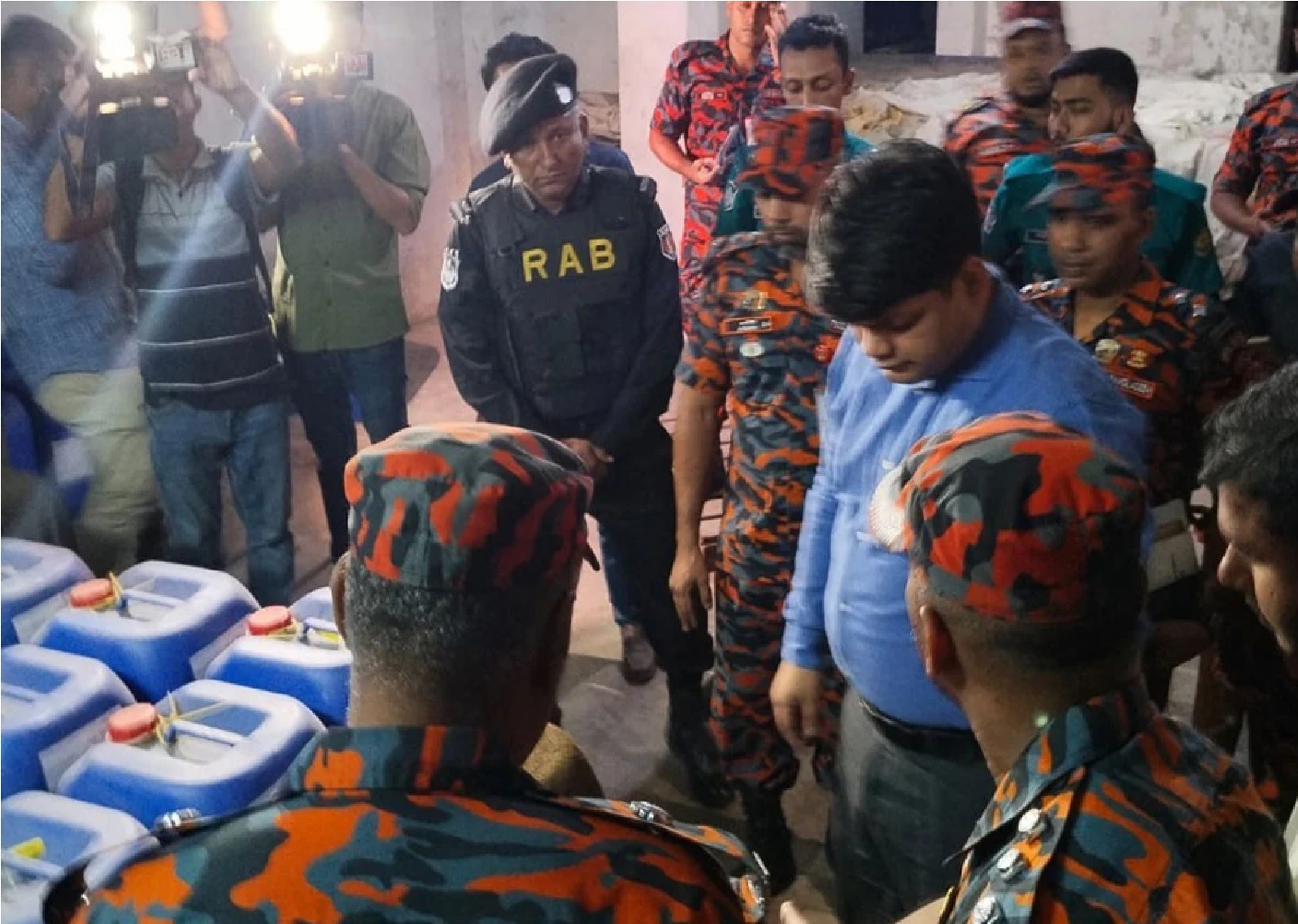 র্যাব–১০ এর সহকারী পরিচালক (মিডিয়া) তাপস কর্মকার জানান, ফায়ার সার্ভিস ও সিভিল ডিফেন্সের নির্বাহী ম্যাজিস্ট্রেট শরীফ মোহাম্মদ হেলাল উদ্দিনের নেতৃত্বে যৌথ অভিযানটি পরিচালিত হয়। বিএসটিআই অনুমোদন ছাড়া নিষিদ্ধ কেমিক্যাল বিক্রির দায়ে এস. কে. ট্রেডার্স নামের প্রতিষ্ঠানের তিন কর্মচারীকে ছয় মাসের কারাদণ্ড ও তিন হাজার টাকা জরিমানা, আর অপর তিনজনকে ১৫ দিনের কারাদণ্ড দেওয়া হয়।