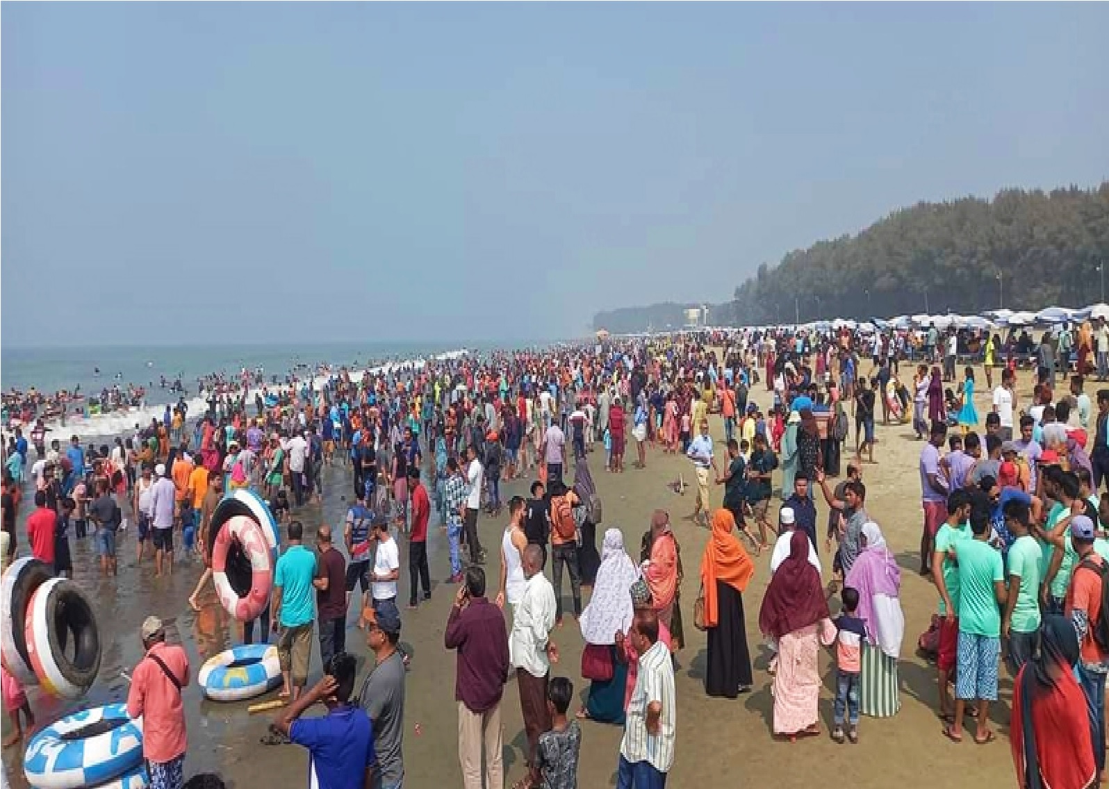 ছুটির দিনে পর্যটকে মুখর কক্সবাজার সৈকত