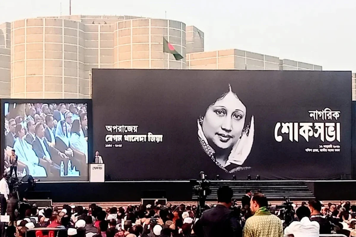 তিনবারের সাবেক প্রধানমন্ত্রী ও বিএনপি চেয়ারপারসন বেগম খালেদা জিয়ার স্মরণে জাতীয় সংসদ ভবনের দক্ষিণ প্লাজায় এক বিশাল নাগরিক শোকসভা অনুষ্ঠিত হয়েছে। শুক্রবার (১৬ জানুয়ারি, ২০২৬) বেলা আড়াইটায় শুরু হওয়া এই শোকসভায় উপস্থিত ছিলেন বিএনপির চেয়ারম্যান তারেক রহমান, ডা. জুবাইদা রহমান, ব্যারিস্টার জাইমা রহমান এবং আরাফাত রহমান কোকোর পরিবারসহ পরিবারের অন্যান্য সদস্যরা। বিকেল ৩টা ৫ মিনিটে পবিত্র কুরআন তিলাওয়াতের মাধ্যমে সভার আনুষ্ঠানিকতা শুরু হয় এবং এতে শোকগাথা উপস্থাপন করেন দৈনিক ইত্তেফাকের নির্বাহী সম্পাদক সালেহ উদ্দিন। অনুষ্ঠানটি পরিচালনা করেন সাবেক প্রধান বিচারপতি সৈয়দ জে আর মোদাচ্ছির হোসেন।