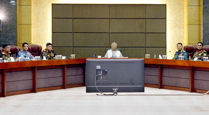 আসন্ন ত্রয়োদশ জাতীয় সংসদ নির্বাচন ও গণভোটকে অংশগ্রহণমূলক এবং সুষ্ঠু করতে সশস্ত্র বাহিনীকে কঠোর পেশাদারিত্ব ও নিরপেক্ষতার সঙ্গে দায়িত্ব পালনের নির্দেশ দিয়েছেন প্রধান উপদেষ্টা প্রফেসর মুহাম্মদ ইউনূস। সোমবার সেনা সদরে সশস্ত্র বাহিনীর ঊর্ধ্বতন কর্মকর্তাদের সঙ্গে এক মতবিনিময় সভায় তিনি এই নির্দেশনা দেন। সভায় প্রধান উপদেষ্টা দেশের আইনশৃঙ্খলা রক্ষায় সশস্ত্র বাহিনীর ধৈর্য ও ভূমিকার প্রশংসা করেন এবং নির্বাচন সংশ্লিষ্ট নিরাপত্তা ঝুঁকি মোকাবিলায় আন্তঃপ্রাতিষ্ঠানিক সমন্বয়ের ওপর গুরুত্বারোপ করেন। অনুষ্ঠানে তিন বাহিনীর প্রধানসহ ঊর্ধ্বতন সামরিক কর্মকর্তারা উপস্থিত ছিলেন।